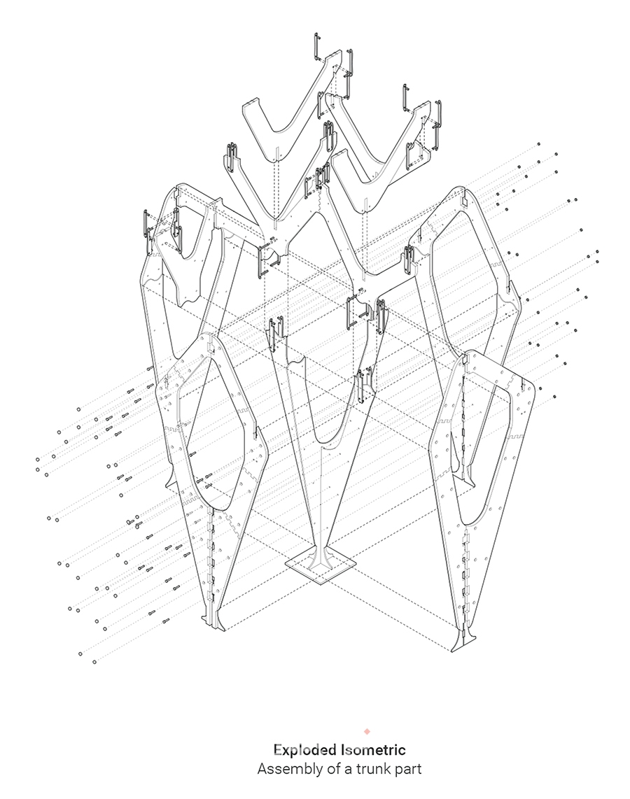 ‘나무 시리즈’는 다음을 목표로 한다. 첫 번째는 형태적인 자유로움이다. 동아시아 목조건축의 결구법은 한·중·일에서 각각 다양한 형식으로 발전하였다. 그럼에도 전통적인 건축이 가지고 있는 형식주의는 형태적인 자유로움을 가로막았다. 파라메트릭 툴을 사용하여 재구성함으로써 동아시아 목조건축의 결구부가 가지고 있는 형태적 한계를 극복하게 한다. 두 번째는 구조적 성능에 대한 고려이다. 공포는 근본적으로 구조적인 이유로 생겨난 것이기 때문에 그것의 본성을 유지하는 것은 매우 중요하다. 그래스호퍼 플러그인(카람바, Karamba)의 계산을 통해 첫 번째 목표로 달성한 다양한 자유로운 형태 중에 어떠한 것이 적정한 것인가를 판단할 수 있었다.
