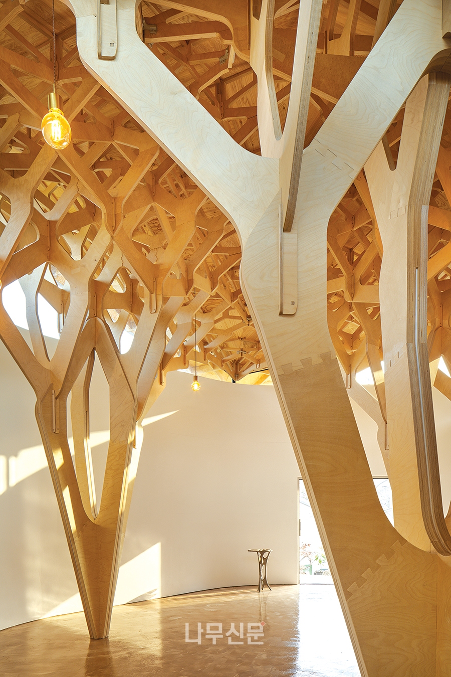 나무의 결합만으로도 지붕을 지탱할 수 있는 재료가 가진 순수한 힘을 보여주기 위함이다.