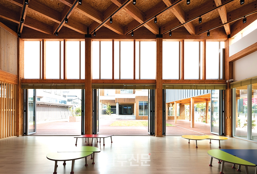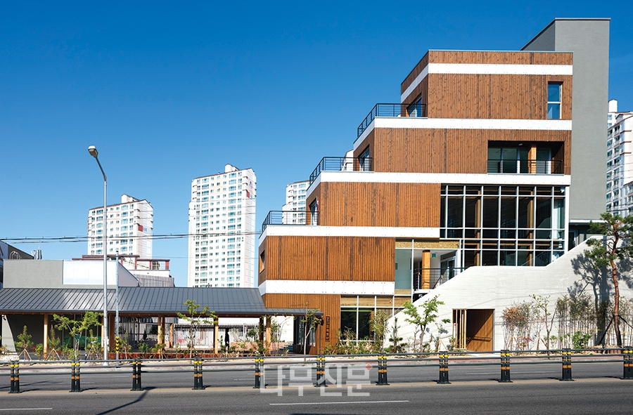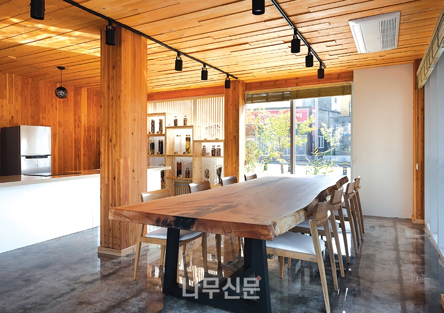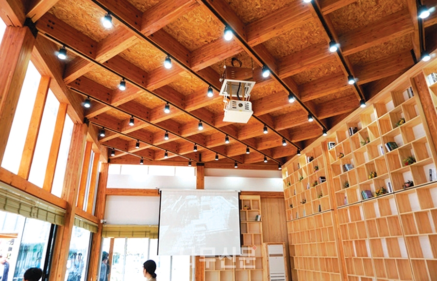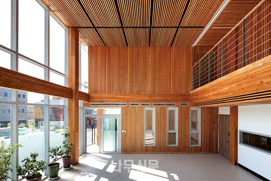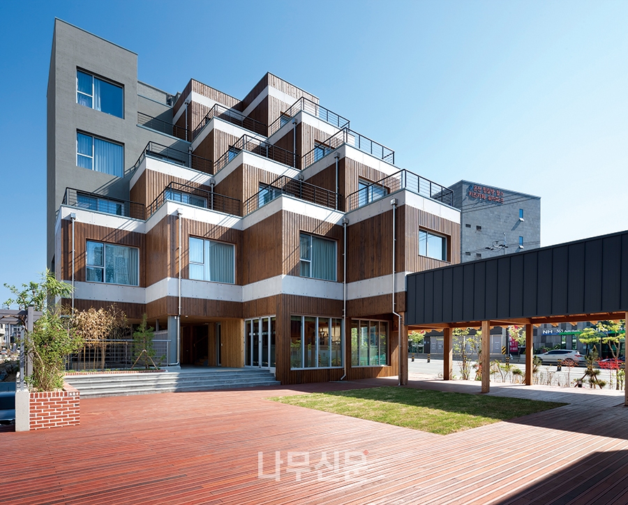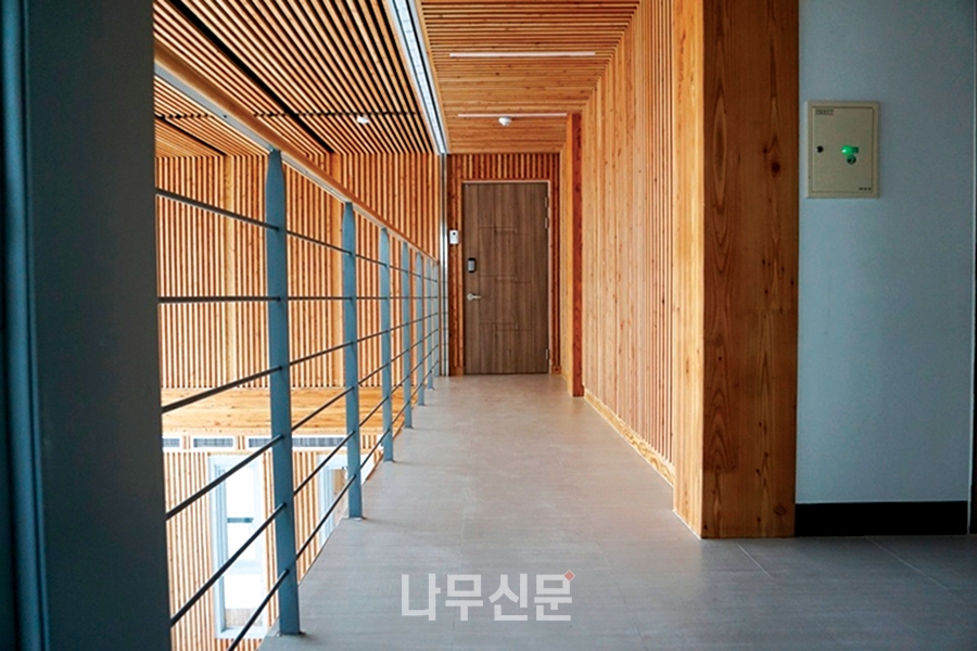 [나무신문] 산림약용자원연구소의 별관 건물인 ‘ㅤ그린 목조관’은 콘크리트 구조의 계단실과 엘리베이터실을 제외한 모든 구조를 중목구조로 설계했다. 주거 문화에서 새롭게 떠오르는 화두는 친환경과 공유다. 폐자재를 갈아넣은 콘크리트 아파트와 이웃 주민과 교류가 없는 폐쇄적인 주거 공간을 벗어나, 친환경 재료인 목재를 적극 도입하고, 주민들이 함께 사용하는 공유 공간의 확보를 통해 다음 세대를 위한 새로운 주거 모델을 제시하고자 하였다.