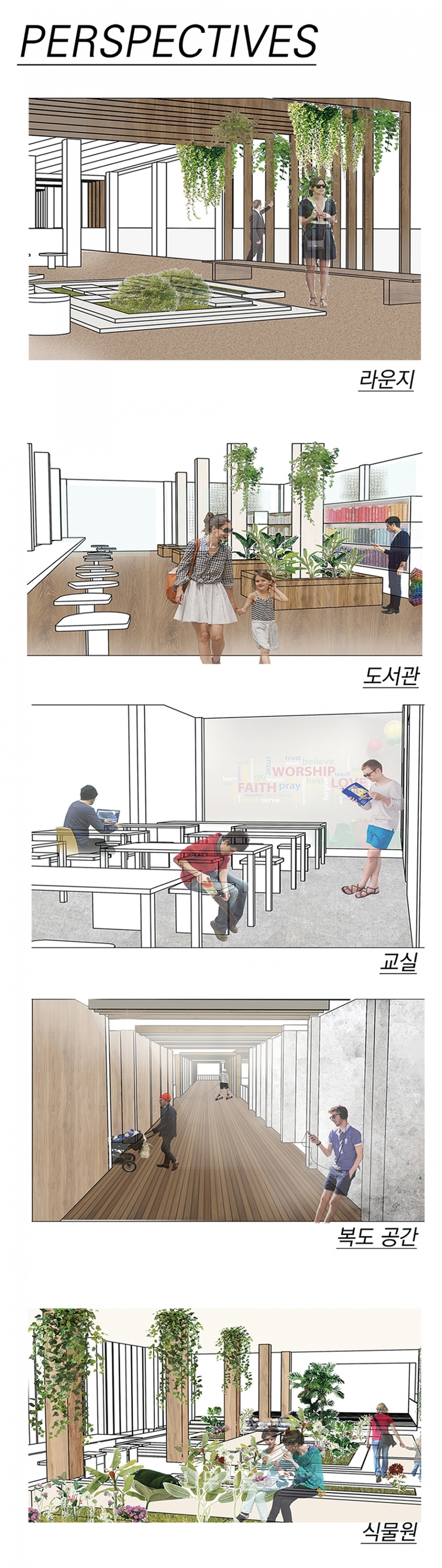 목조를 통한 기존 놀이마루의 또 한 번의 리모델링으로 더 다양한 프로그램들과 공간을 제공하고 담벼락으로 막혀있던 운동장의 녹지화 및 ‘경계’의 ‘공간화’로 형성된 다양한 파빌리온(Pavilion) 형태의 공간들을 통해 회색 콘크리트 도시에 ‘숲’이라는 새로운 문화 및 공공 공간으로서 생명력과 쾌적함을 제공할 수 있다.