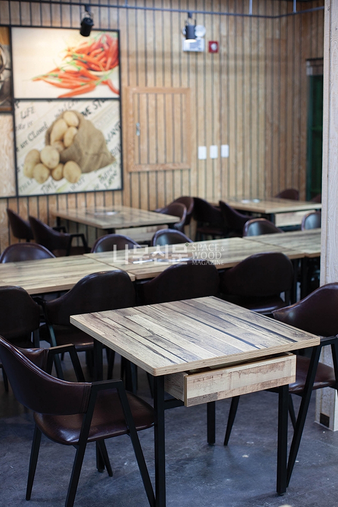 목재는 주로 낙엽송합판, 자작나무합판, 자작나무 원목 등으로 제작됐으며, 카페 테이블, 상업용 테이블, 업소용 테이블 등 용도로 많이 판매되고 있다.