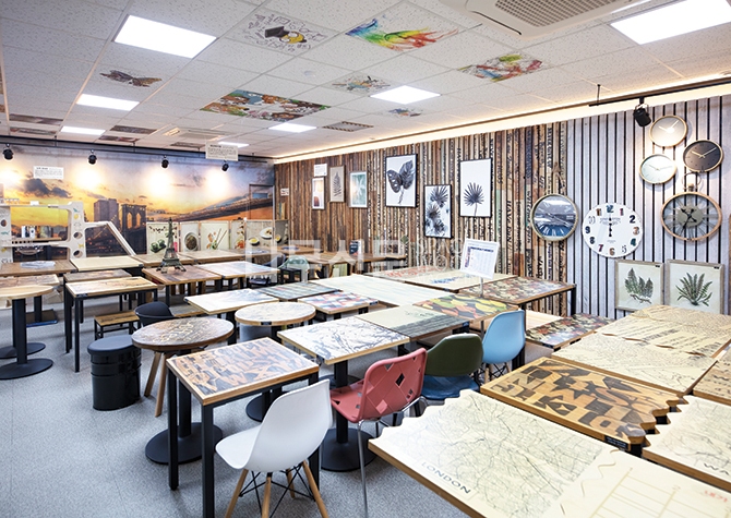 ‘목재도 패션이다’ 에이스임업(대표 하상엽)이 목재 위에 그림, 패턴, 로고 등 고객이 원하는 이미지를 직접 그려 넣어 제작하는 나만의 테이블, ‘패션테이블’을 출시했다.