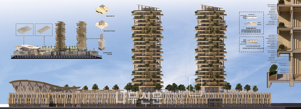 지구환경에 심각한 영향을 미치는 기존의 도시재생 방법에서 탈피하여 저탄소 친환경 재료인 목재를 적극 사용하여 콘크리트에서 나무로 대체되는 녹색도시의 가능성과 지구환경과 인간의 공존을 위한 미래도시의 방향을 제안하고자 한다.
