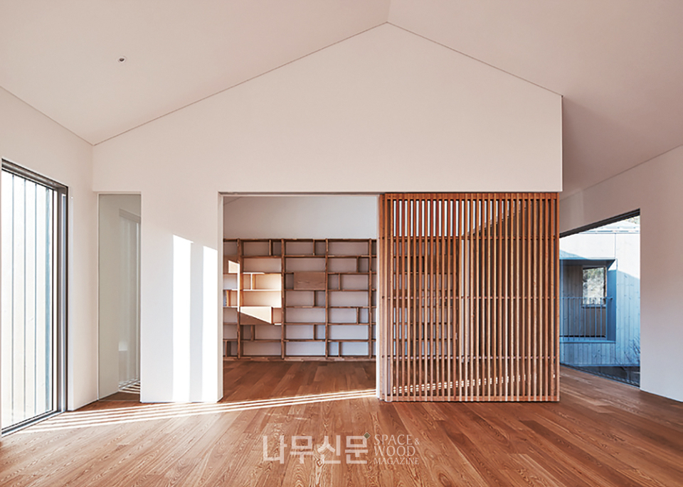 테라스 등 외부 평슬라브 부분은 철근콘크리트구조로 풀어내고, 그 구조를 활용하여 목구조를 하이브리드화 하는 방식으로 구조를 계획하였다. 지붕구조는 1층으로부터 연속한 수직기둥에 기댄 리지빔(ridge beam) 구조방식이어서 내부공간의 질서로부터 자유롭게 천장을 구성할 수 있었다. 리듬감 있게 흐르는 대지의 방향을 따라 구성된 꺾인 지붕선은 간결한 형태언어를 가진다.