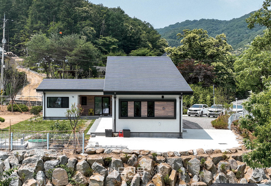 자녀들을 모두 출가시키고 건축주 내외만 거주할 주택이기 때문에 면적에 대해 크게 할애를 하지 않고자 했다. 거기에 더해 건축주의 나이 등을 고려해서 2층이 아닌 단층주택으로 제안해 진행했다.
