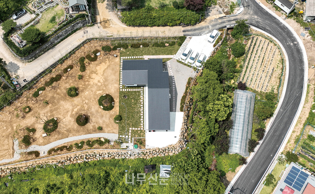 아울러 개발행위허가를 받는 대지면적보다 실제 소유하고 있는 앞마당까지 합하면 꽤 큰 면적의 땅이다. 다만 인접해있는 도로보다 레벨이 낮은 땅이기 때문에 도로에서 건축주의 땅이 한눈에 다 보이는 불리한 점이 있었으며, 이 부분은 곧 프라이버시를 확보해야 하는 요소로서 자연스럽게 설계의 주안점이 됐다.