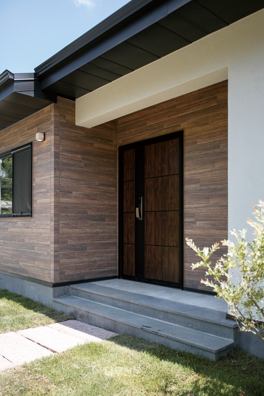 외벽은 스타코플렉스 베이스에 세라믹사이딩을 포인트로 시공했으며 이질적인 재료가 만나는 부분은 징크로 재료분리를 명확하게 함으로써 뚜렷한 이미지를 연출했다.