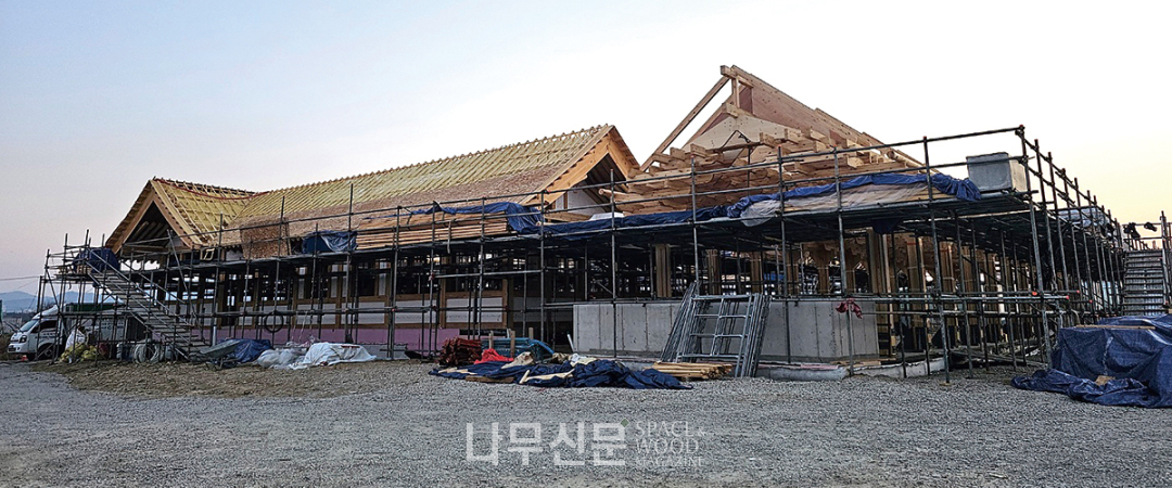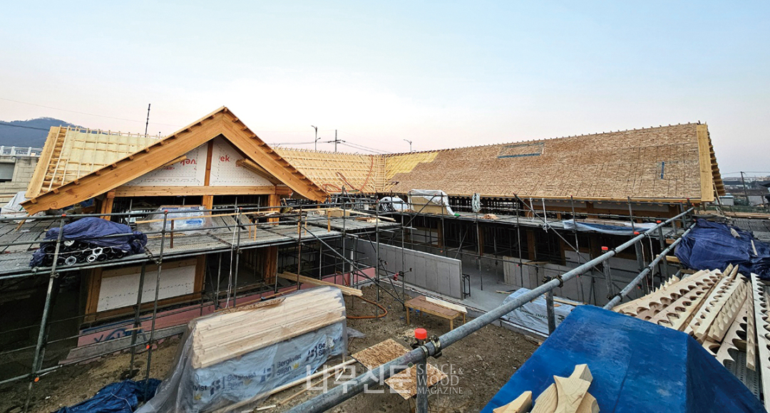 한편 스튜가하우스는 현재 경주에 지금까지 없었던 목조건축 단지를 조성하고 있다. 한옥을 콘셉트로 한 이 단지는 한의원동과 카페동, 갤러리동 등으로 꾸며지고 있는데, 겉에서 보기엔 한옥이지만 내부로 들어가면 세 동이 각각 확연하게 다른 구조의 기둥보 방식으로 구현됐기 때문이다. 여기에 적용된 단열재가 바로 헌츠만빌딩솔루션 ProSeal HFO, 한옥은 벤트를 만들기 힘들기 때문이다. /나무신문
