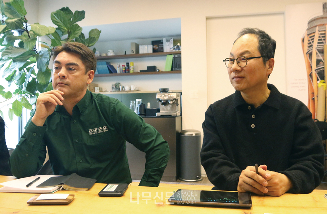 다음은 한국을 방문한 헌츠만빌딩솔루션(Huntsman Building Solutions) 크리스토퍼 트루델(Christopher Trudel) 아시아 총괄매니저와 김감봉 대표와의 일문일답, 기자가 가끔 끼어들었다.