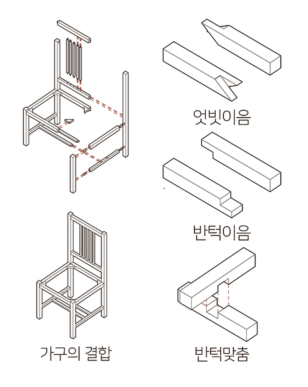 두 나무 부재들은 ‘이음’을 통해 연결되며, ‘맞춤’을 통해 견고한 구조를 만들어낸다. 사람들이 만나 마을을 형성하듯, 나무와 나무로 만들어지는 작은 연결로부터 시작해 가구에서부터 목구조, 그리고 목구조가 만들어낼 수 있는 건축적 공간들까지 이끌어 내려한다.