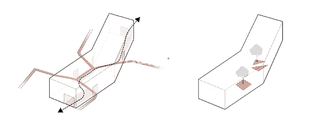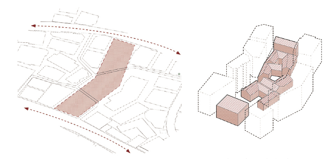 가구거리와 동네를 잇고, 그 흔적을 남기는 방법을 모색한다. 기존 건물들이 있었던 장소들을 보이드로 구성하며 그를 감싸는 구조를 통해 과거와 현재를 잇고, 길과 길을 잇는 공간을 시도한다.