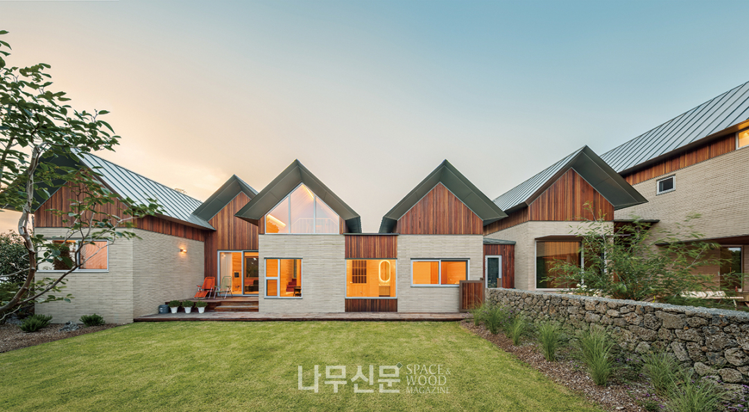 누군가에겐 익숙한 집이지만 스테이의 역할까지 수용하기 위해선 어느 정도의 상업성이 필요했기 때문에, 단순한 외관디자인보다는 조금 더 유니크한 건축미가 돋보이도록 계획했다. 이 6개의 박공지붕의 나열은 입체적이면서도 다이나믹한 스카이라인을 형성하고 마치 제주의 오름들을 연상케 한다.