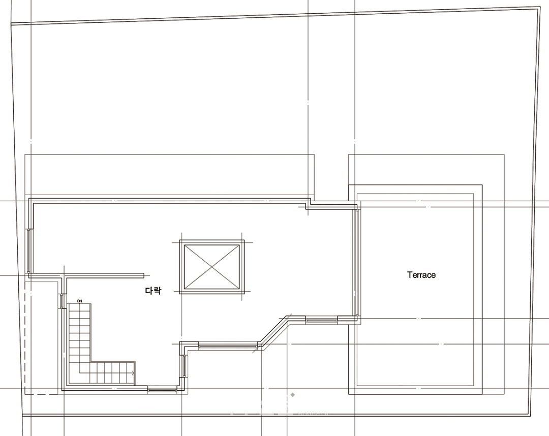 지하로 내려가는 주계단의 남측에 면하는 창호와 부계단 옆 자그마한 공간에 둔 천창은 지하층 자연채광에 조금이나마 도움을 줄 수 있도록 계획했다.