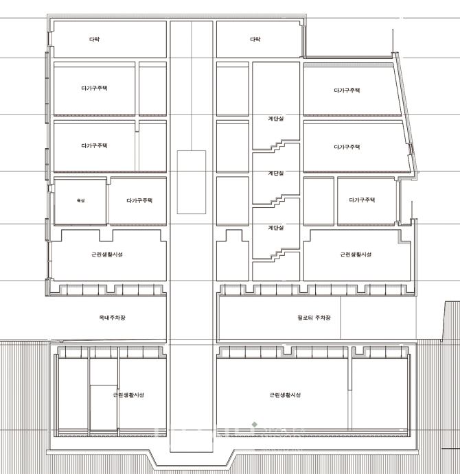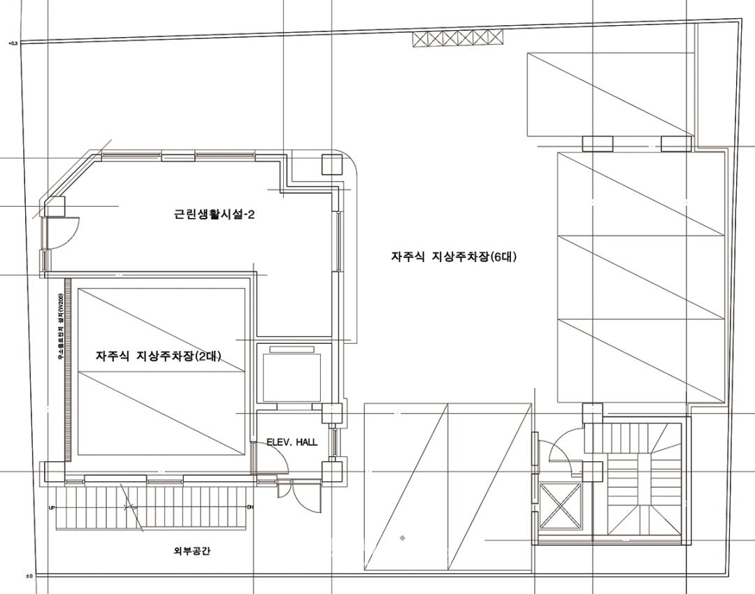 주차장은 관리시스템을 도입해 임차인들을 위한 주차장과 건축주 가족이 사용할 주차장으로 분리해 계획했다.