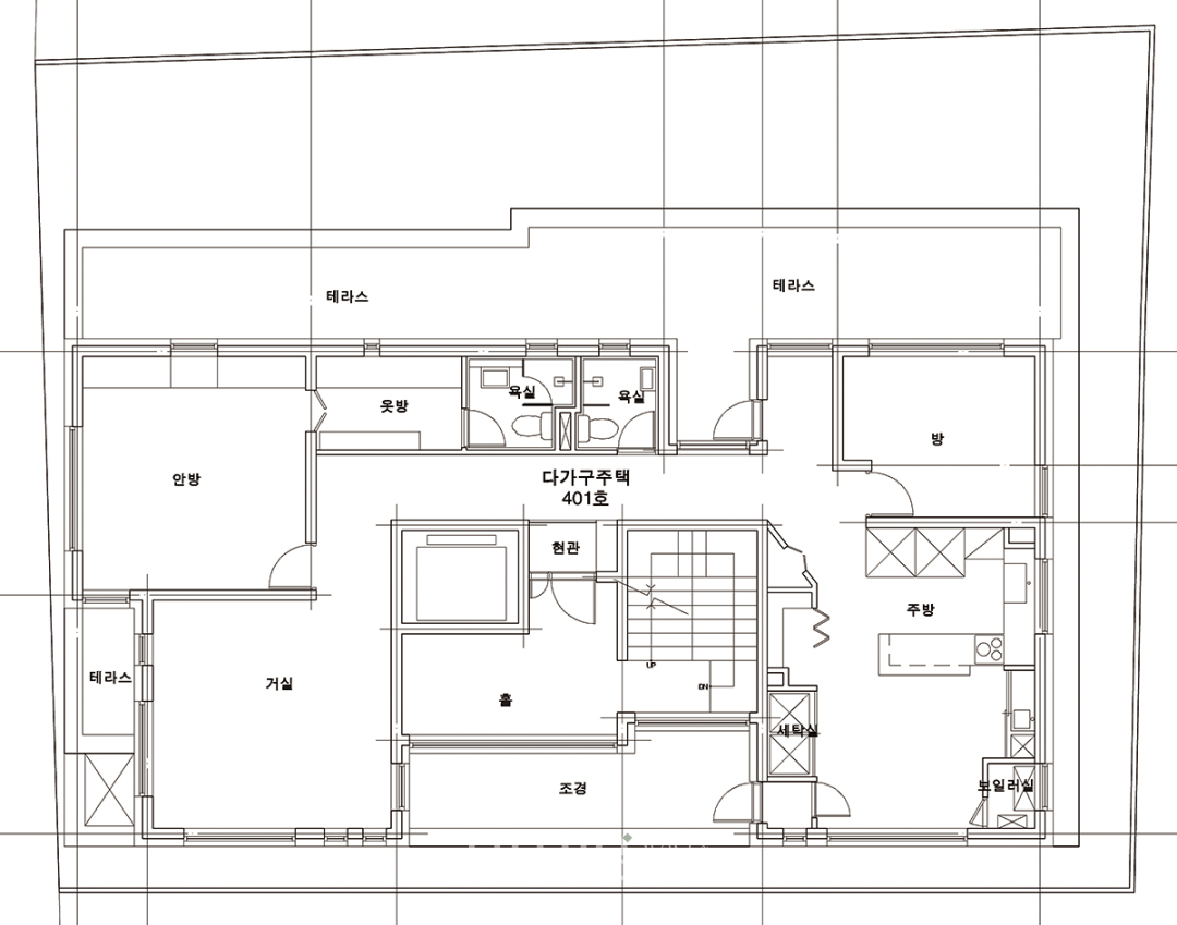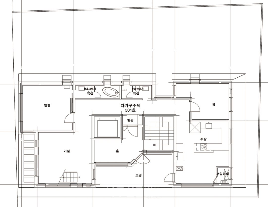 건축주 아버님이 지어주셨다는 이전의 단독주택은 어머님이 쓰시는 층과 건축주 가족이 머무는 층으로 분리된 복층 구조였다.