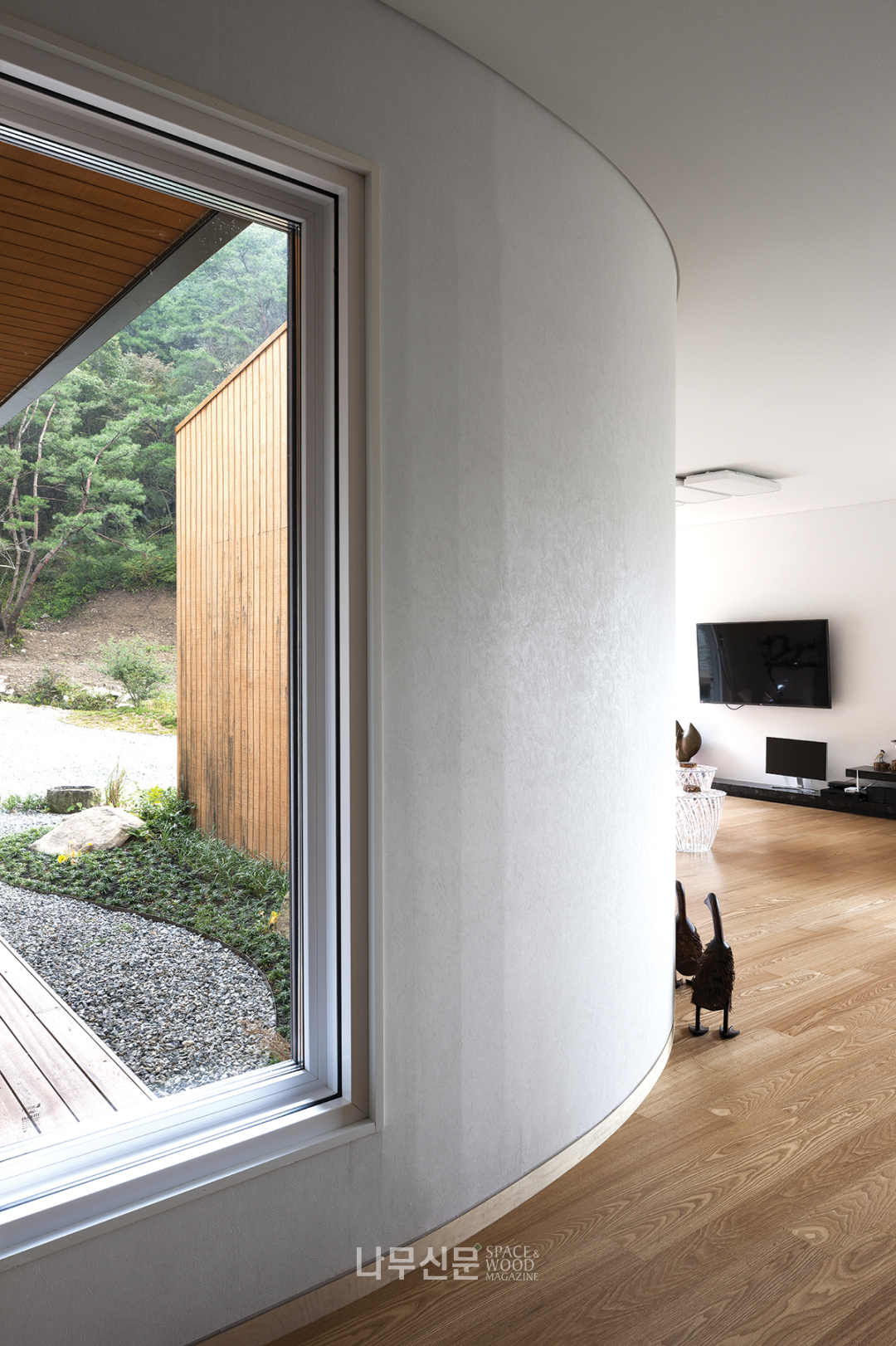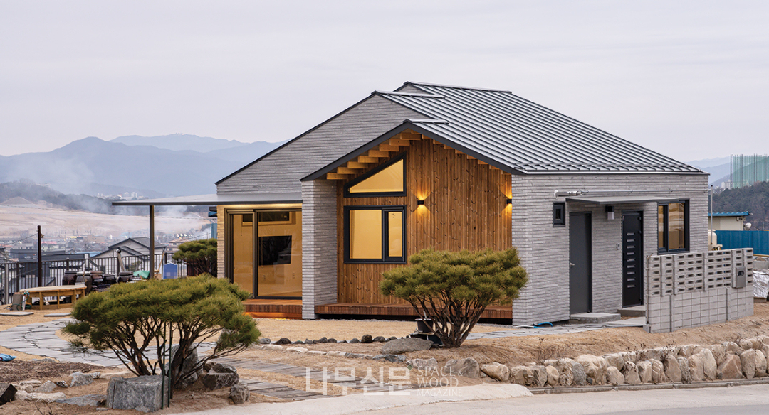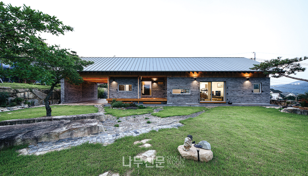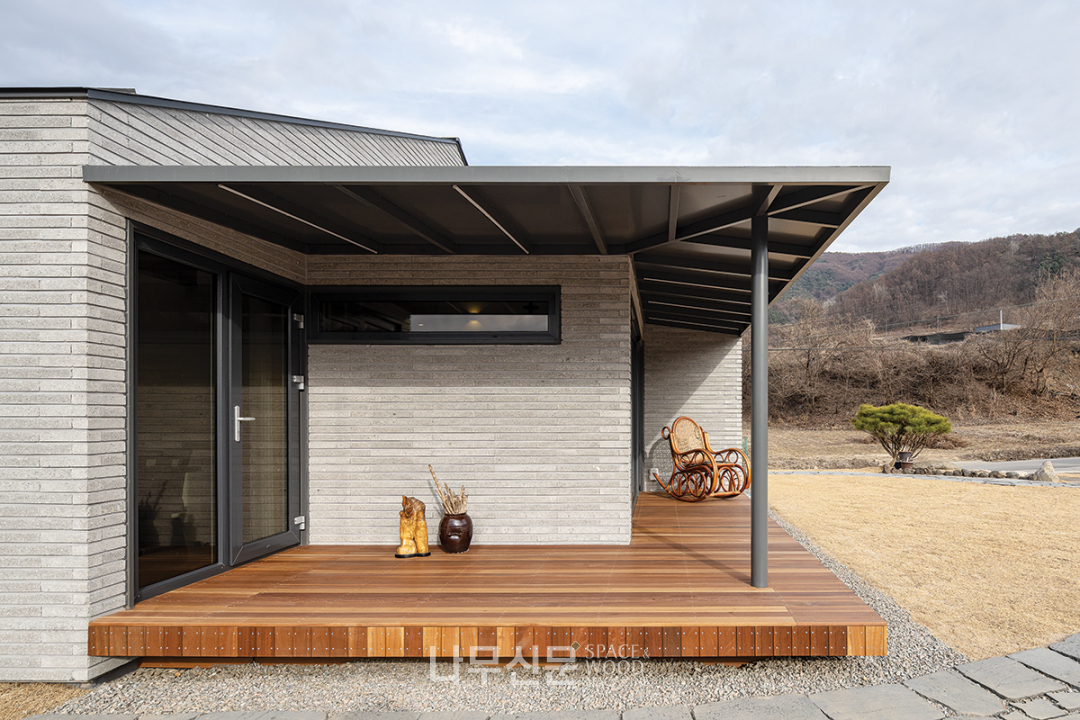 이 주택 역시 자연 속에서 아늑하고 편안한 생활을 원하는 노부부를 위해 설계됐다. 단층 구조로 편리함을 극대화하고, 실내 곳곳에 배치된 창문을 통해 자연 채광과 환기가 원활하게 이뤄진다. 남동향 배치를 통해 아침 햇살을 집 안 깊숙이 들이며 하루를 밝게 시작할 수 있게 했다.