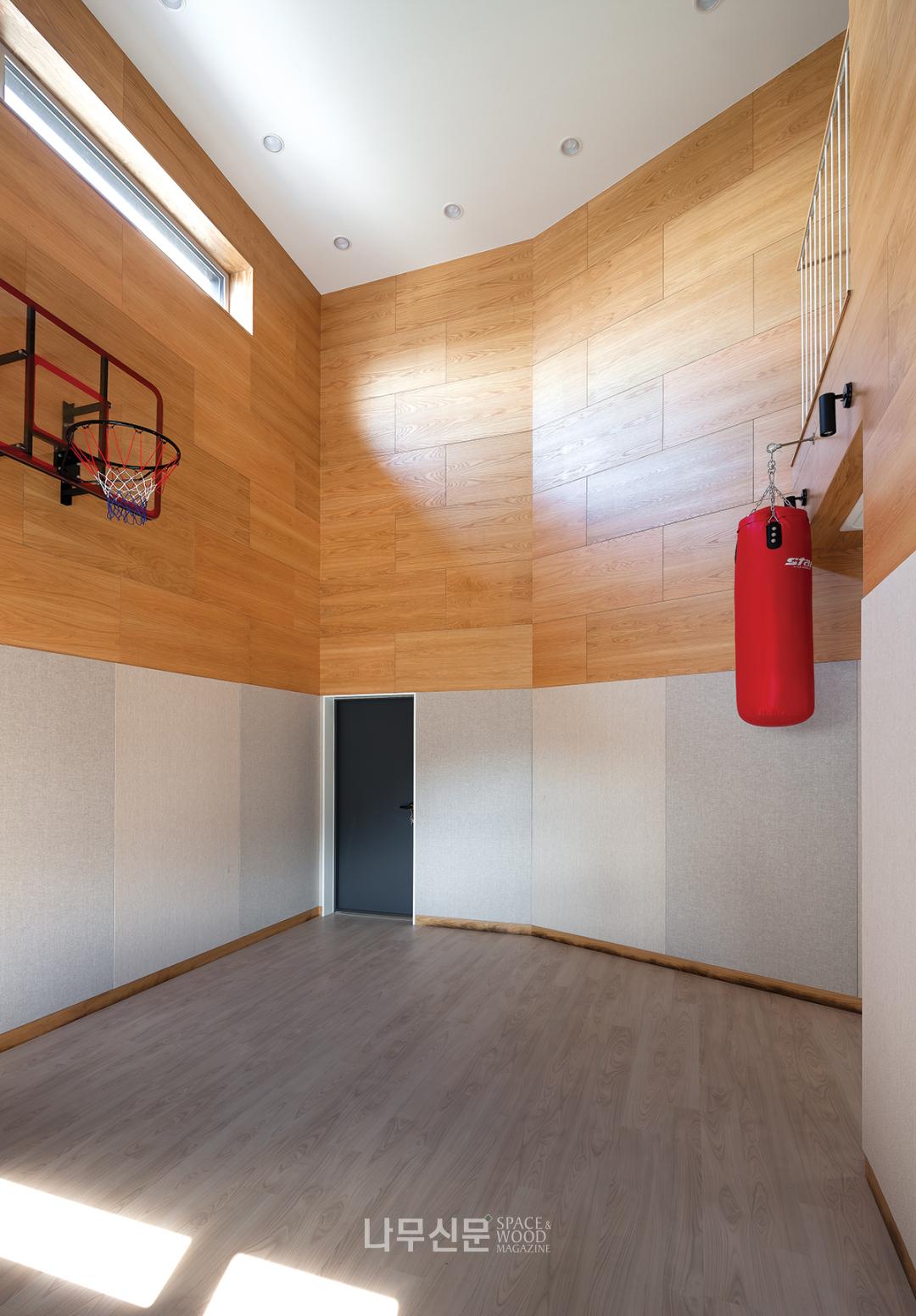 가족의 여가와 취미를 중심으로 설계된 독특한 공간 활용이 특징이다. 내부에 실내 농구장을 배치해 여가를 즐기면서도 건강한 라이프스타일을 실현할 수 있도록 했다.