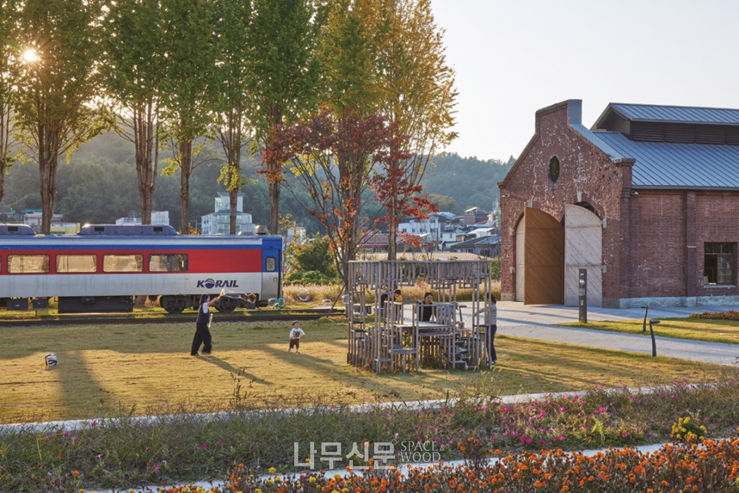 차량정비고는 국가등록 근대문화유산(제202호)으로 100살이 된 건물이다. 1925년 건립되어 6.25 전쟁을 거치고 2000년대까지도 사용되다 본래의 쓸모를 다하고 방치되어 있었다. 총탄의 상흔이 남아 있는 40미터 길이의 조적조 벽체가 12M 폭의 왕대공 트러스를 오롯이 버티고 있었고, 필요에 따라 무질서하게 부가된 공간을 새로운 쓸모에 맞게 정비하고 이젠 자취를 감춘 아치형 대문(4.2x4.9)을 복원하는 과제가 남겨져 있었다.