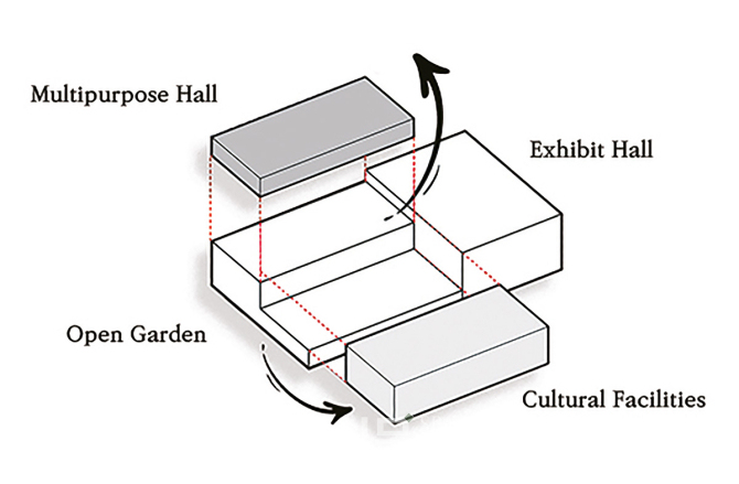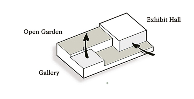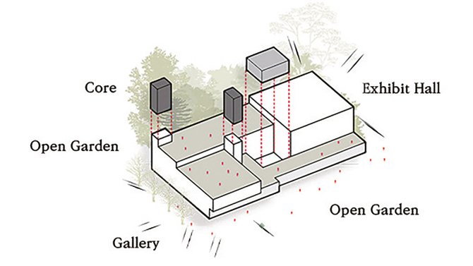 외부로 노출된 코어를 통하여 쉬운 접근과 동선의 이동을 더욱 확실하게 확인할 수 있으며, 야외 정원을 통한 소통의 가능성 열어둠.