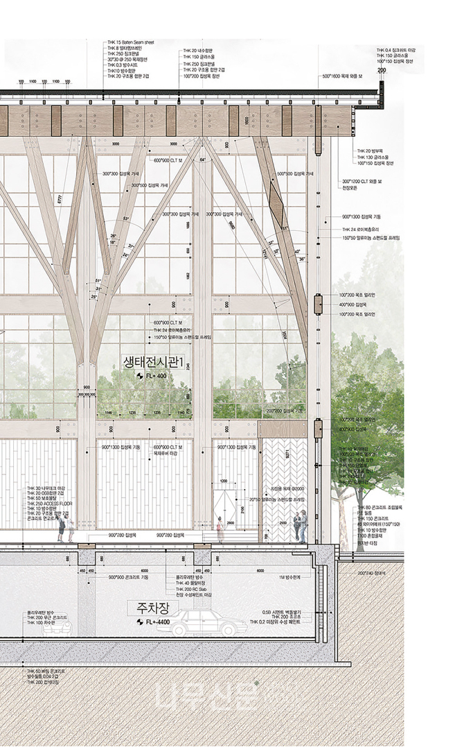 발전하는 기술과 대중의 자연에 대한 관심이 조화를 이룰 때, 비로소 삶을 영위하기 좋은 환경이 만들어진다. 생태탐방원은 단순한 건물이 아니라 자연과 인간의 깊은 연결을 표현하는 공간이다. 이는 자연을 이용하고 소비하는 것이 아니라, 자연 그 자체를 느끼고 제대로 알아갈 수 있는 매개체로서 지역 생태계와 건축이 상생하는 곳을 지향한다.