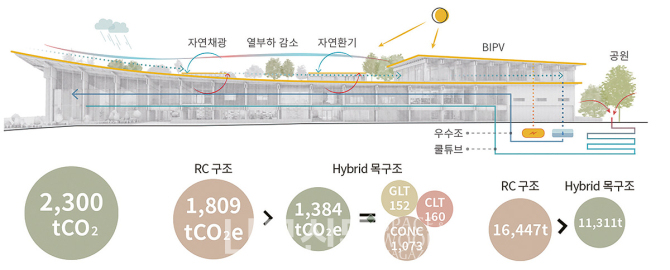 철근콘크리트 구조 대비 LCA 탄소배출량 23%(약 425t) 감소