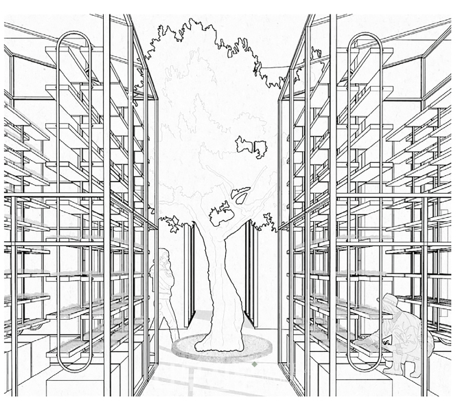 나무는 뿌리라는 ‘과거’에서 시작해 ‘현재’인 잎과 줄기를 지나 열매라는 ‘미래’로 나아간다. 미래를 향한 희망은 뿌리가 다시 양분을 흡수할 수 있도록 하는 반복의 원동력이 된다. 시장을 한 그루의 나무라 보면 뿌리는 역사를 보여주는 관아, 현재는 시장, 미래는 새로운 공간으로서 시장이 나아갈 지향점이 된다.