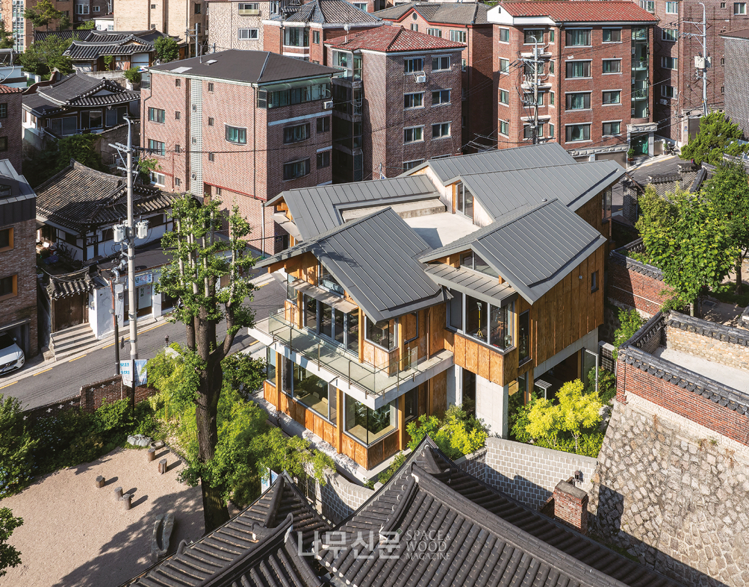 북촌과 원서동의 역사를 지닌 한옥들은 그 규모가 작다. 건물을 새로이 지으면서도, 그것이 북촌의 모습을 거스르지 않길 바랐다. 따라서 크지 않은 여러 개의 형상이 모여 하나의 군집을 만드는 형태를 떠올렸다. 하나의 지붕이 마치 한 채의 한옥처럼 보이도록 했다. 그리고 이러한 지붕들이 하나둘 모여 마을을 이룬다.