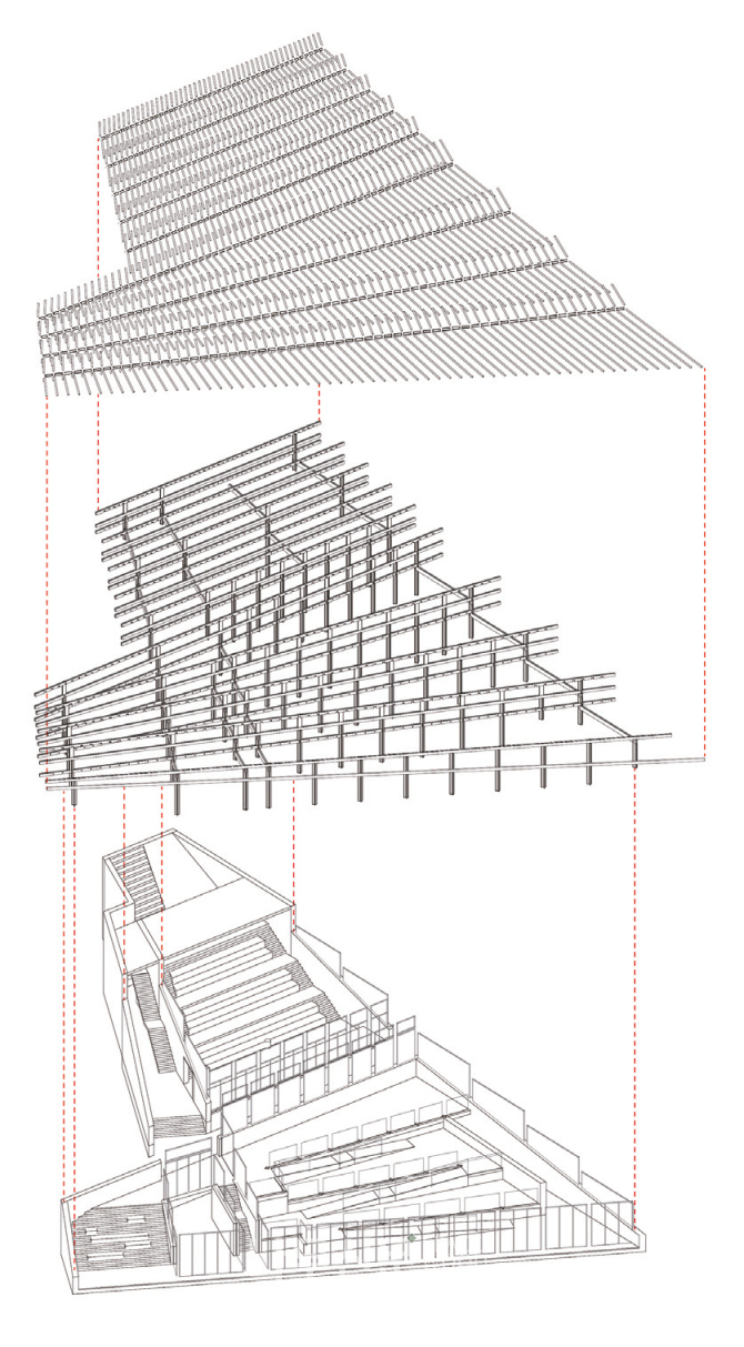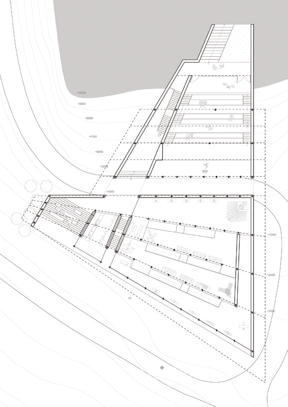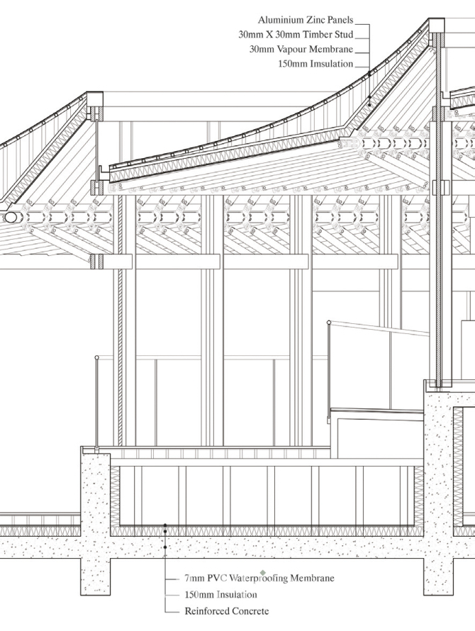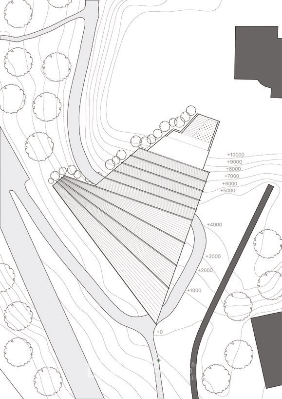 기존의 부지는 작은 공원과 서울기상박물관까지 이어지는 산책로, 그리고 한양도성 인왕산 구간이 위치한다. 본 프로젝트는 심한 경사로 인하여 공원으로 사용되지 못하는 부분에 경사에 순응하는 건축물을 계획하면서도, 기존 산책로의 맥락은 그대로 유지하는 것을 목표로 하였다. 등고선에 순응하는 방식으로 만들어진 지붕은 정형적으로 정의 내리기 힘든 곡면의 형태를 띠고 있는데, 디지털패브리케이션 기술과 각도를 조절할 수 있는 조인트 시스템을 복합적으로 활용하여 새로운 목구조 형태를 제안한다.