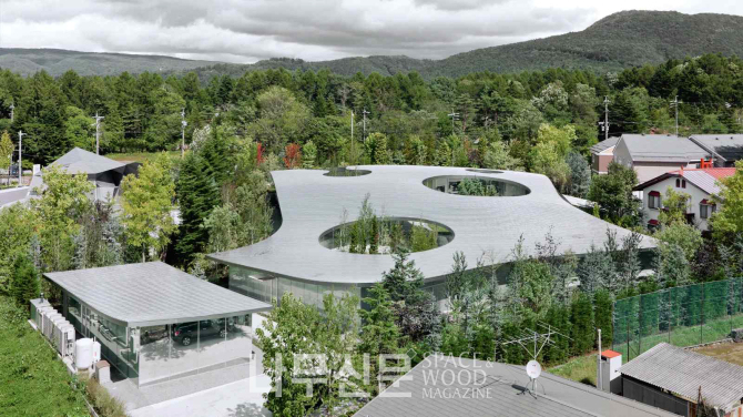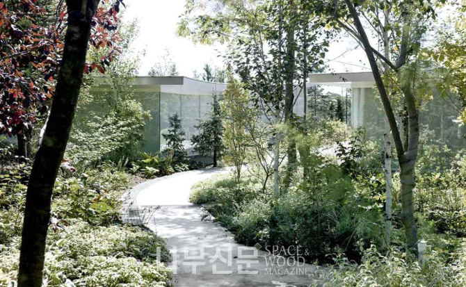 센쥬 박물관을 처음 봤을 때 숲 속에 녹아들어 있다는 느낌을 받았다. 딱딱한 박스의 형태가 아니라 자연과 어우러져 흐르는 듯한 지붕으로 인해 세워져 있다기 보다는 숲 속에 스며들어 있다는 느낌이 들었다.