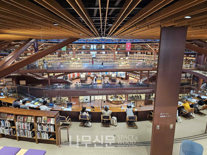 도서관은 총 5가지의 색으로 구획되어 있었다. 동, 서, 남, 북 각각의 존에 해당하는 색은 시각적으로 방향성을 주고 방문자로 하여금 길을 쉽게 찾을 수 있게 내비게이션의 역할을 하고 있었다. 일반 도서공간부터 시작해서 어린이들을 위한 공간, 집중을 위한 공간, 회의 공간, 체험공간, 전시 공간, 광장 등 사용자의 요구에 따라 다양한 용도의 공간으로 구성되어 구획되어 있었다. 따라서 우리가 흔히 아는 도서관의 조용한 모습이 아닌 서로 대화라고 말할 수 있는 말하는 도서관의 모습을 가지고 있었다. 또 다른 공간은 오로지 집중하기 위한 사람들을 위해 차분하고 조용한 공간의 모습을 가지고 있었고, 또 다른 공간은 어린이들을 위한 놀이터와 같은 공간으로 꾸며져 뛰어노는 어린이들의 활기를 느낄 수 있었다.