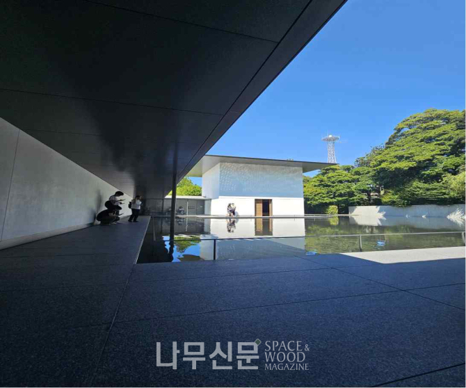 다니구치 요시오 히가시야마 카이 미술관은 히가시야마 카이의 작품을 소장하고 있는 작은 미술관이다. 하지만 공간의 밀도는 아닌 것 같았다. 로비로 들어 섰을 때는 미술관의 정면에 있는 물로 된 정원이 우리를 맞이해 주었다. 수면에 비치는 미술관의 건물과 주변의 소나무와 관목들로 인해서 일본의 가레산스이의 느낌을 주었다.
