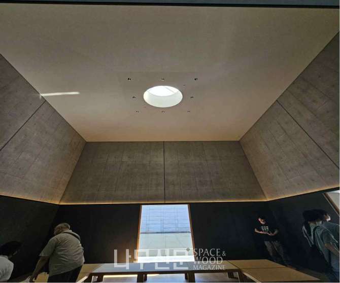 첫 인상은 기념관 대지와의 조화를 바탕으로 수평적 흐름을 강조하고, 재료는 콘크리트, 유리, 물, 그리고 자연광이라는 제한된 요소만을 사용하고 있었다. 건물은 과시하지 않으며, 오히려 자신의 존재를 ‘숨김’으로써 방문자가 그 안에서 자기 성찰에 집중할 수 있도록 유도하고 있었다.