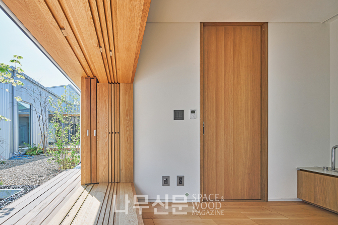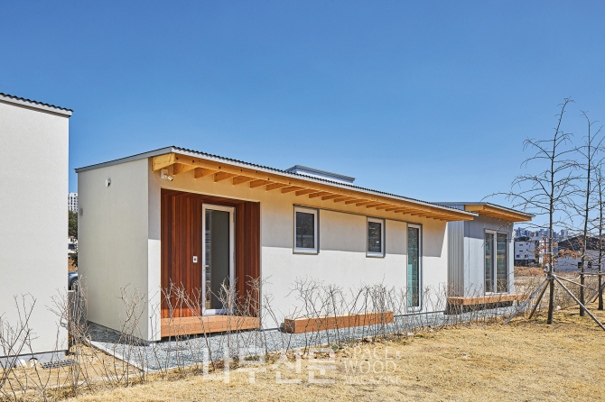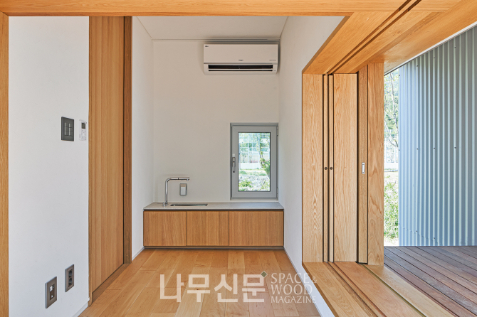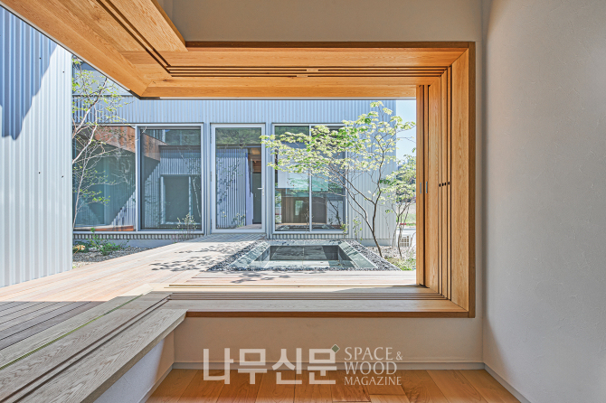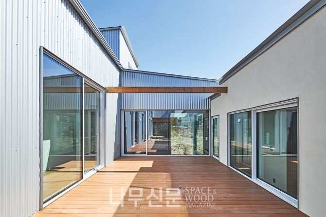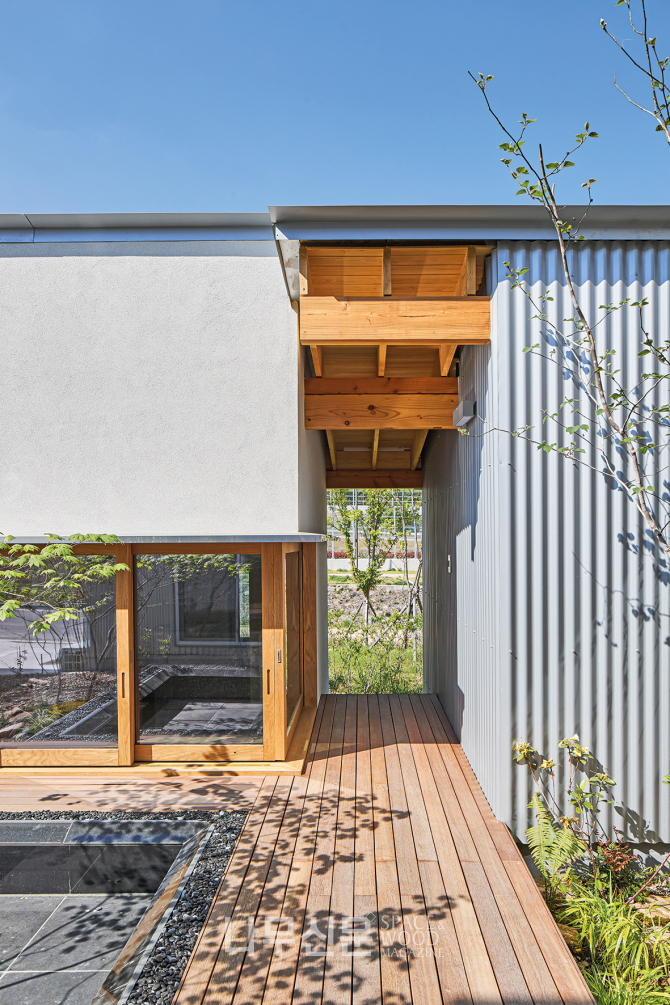 외관은 골강판과 목재, 크림색 스타코의 대비로 완성됐다. 산업적 질감의 금속과 시간이 흐를수록 표정이 깊어지는 목재가 서로의 개성을 드러내고 크림색 스타코는 이를 중화하며 균형을 잡는다.