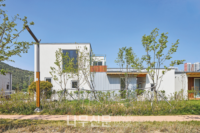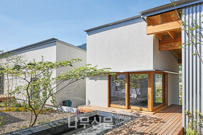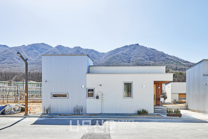 첫 번째 집은 중년 부부의 단층 주택이다. 아파트 생활을 벗어나 자연 속에서 각자의 취미를 누리면서도 서로의 존재를 가깝게 느낄 수 있도록 계획됐다. 두 번째 집은 젊은 부부와 자녀로 이루어진 3인 가족의 보금자리다. 어릴 적부터 ‘마당 있는 집’을 꿈꾸던 건축주는 자녀에게 그 경험을 물려주고자 복층 구조의 주택을 선택했다.