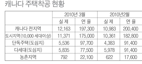 - 캐나다는 2010년에 주택착공을 175,000~185,000호를 유지할 것을 기대 하고 있음.