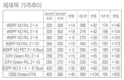 - 현재의 공급부족의 부분적 이유는 시베리아 제재소가 2010년 1분기에 작년보다 적게 낙엽송 제재작업을 했기 때문임. 그 대신에