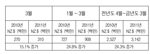 - 2011년 1분기 뉴질랜드의 중국 수출은 200만㎥로 전년 동기 보다 58만㎥가 늘었음.