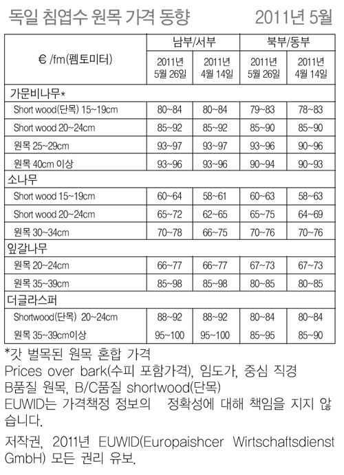 - 시장에서의 원목가격은 5월에 다시 상승하였음.